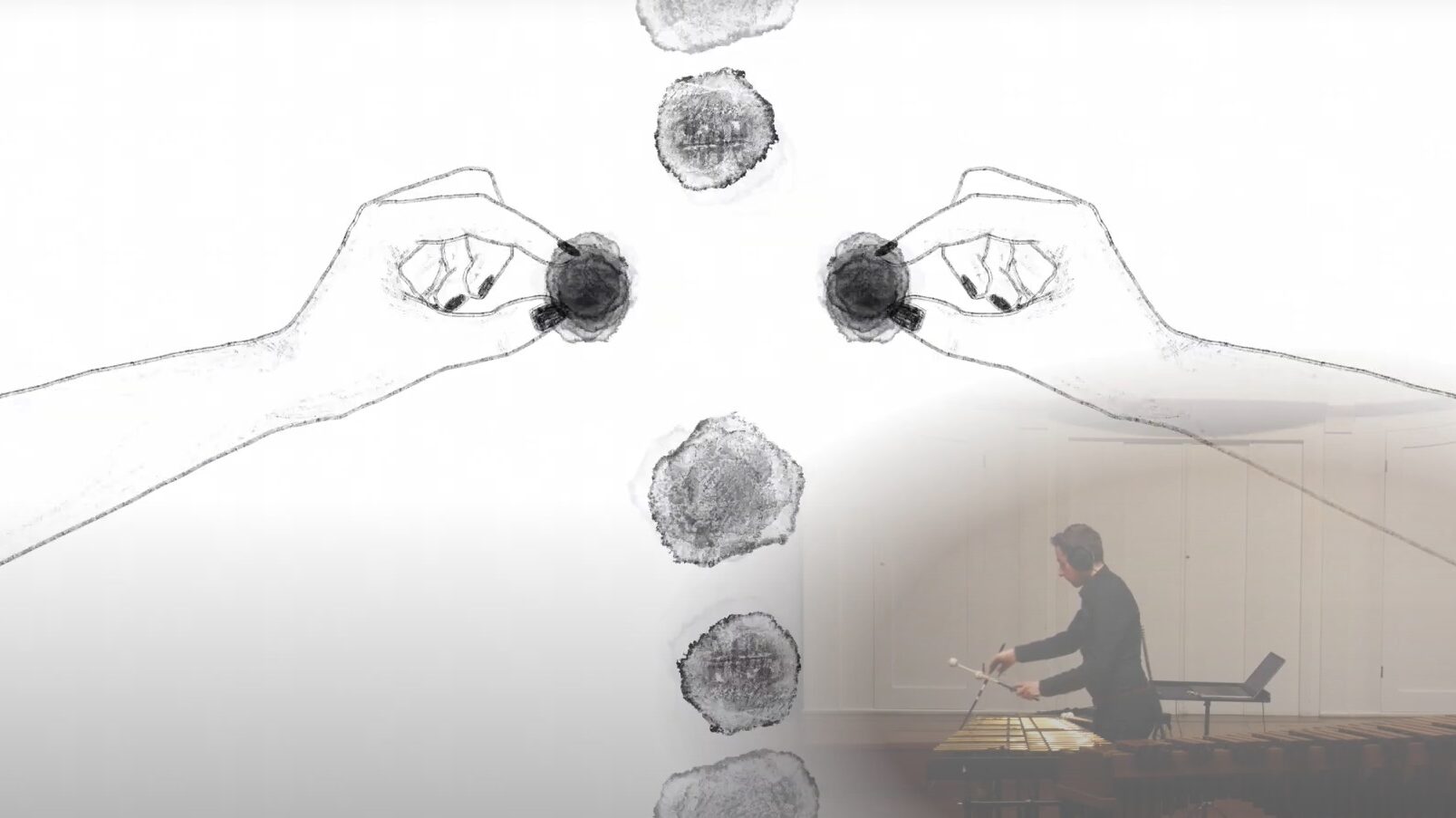 Performance of “Odbicie” for Vibraphone, Marimba, 8-channel tape and animation